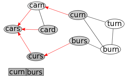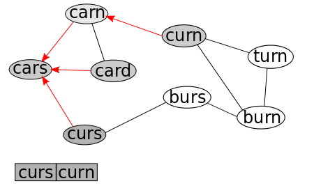 Now, the parent notations become useful; we can now walk them back and see the path we took through the graph. turn-> curn-> carn-> cars. Success!
