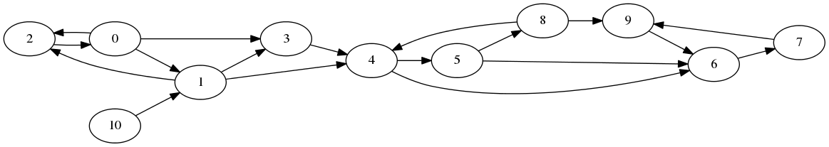 The other file (small.dot) is made-up synthetic data for easier testing and development. Here is a visualization of that graph: