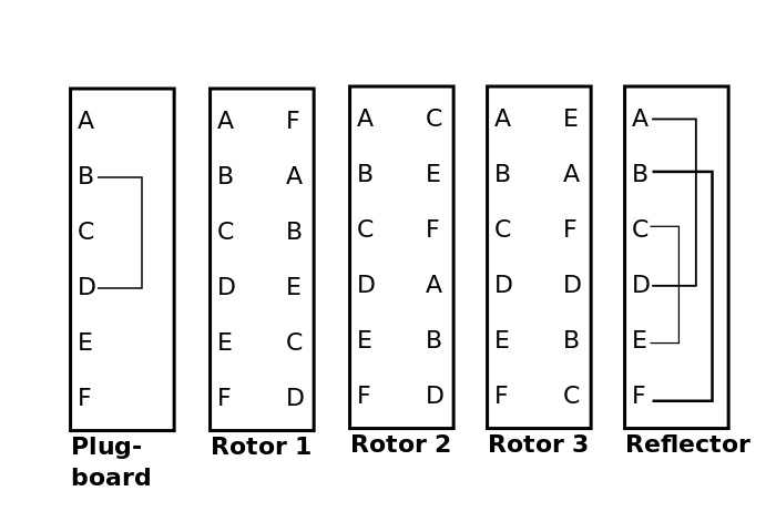 the above example, e=Enigma('FABECD','CEFABD','CEAFDB')).