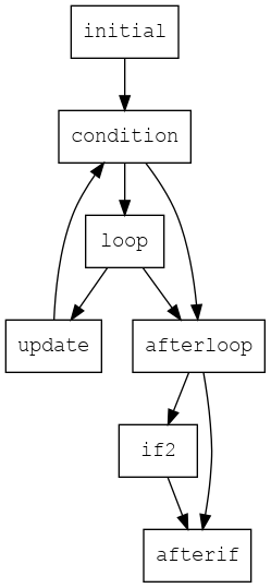 A useful property of most IRs is that they make it easier for the compiler to analyze the control flow of the program. The way this is typically represented is by first breaking the program into a number of basic blocks - sequential chunks of statements with no branches. In the strictest setting (which the case for LLVM IR that we will see in lab), each basic block must start with a label and end with some control flow statement like a branch or a function call.