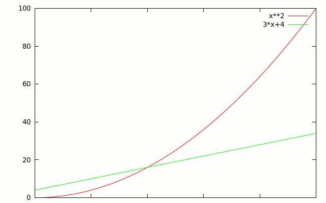 This question is all about growth rate, and for many formulas it’s a lot easier to figure out than you might think. Take a look at this graph of \(f(n)= n^2\) vs. \(g(n) = 3n+4\).