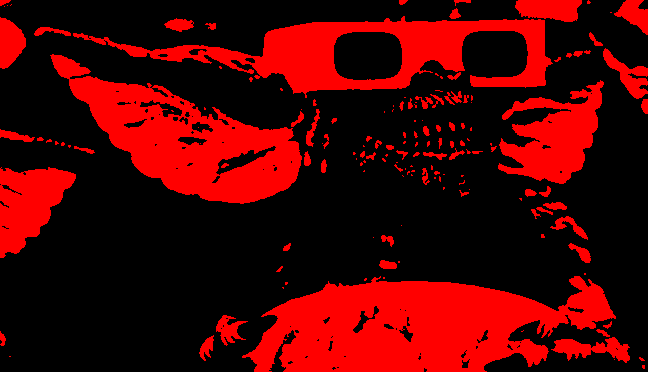 - Any pixel where the sum of (red + green + black) values is at least 256, turns to pure red (R=255, B=0, G=0).