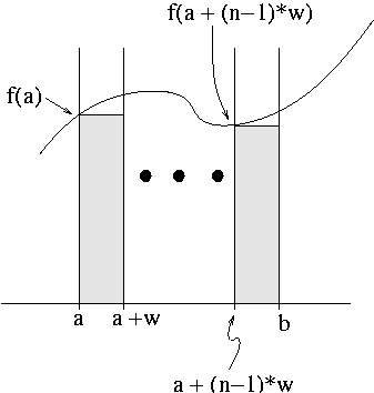 x = a and x = b by the sum of n evenly spaced rectangles whose hieghts are the function values at x-values given by the left endpoints of the bases. To remind yourself of how this works check out this picture.